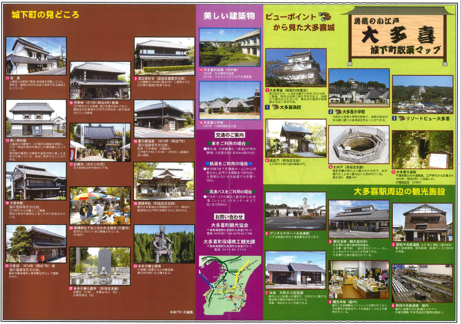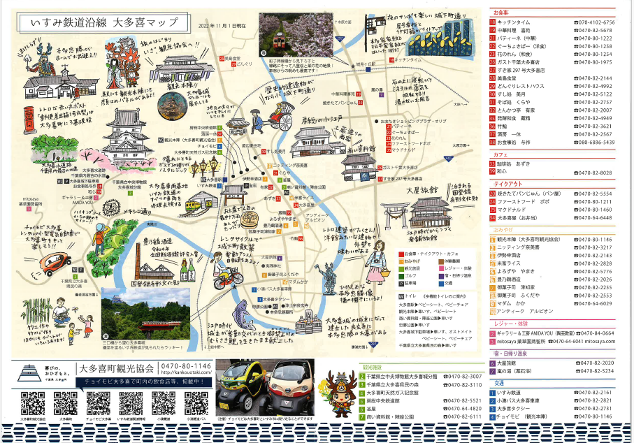 東には歴史を感じる城下町、西には養老渓谷の絶景と温泉。そして両者を結ぶローカルライン、小湊鉄道といすみ鉄道。大多喜町には多くの観光名所が集まっています。