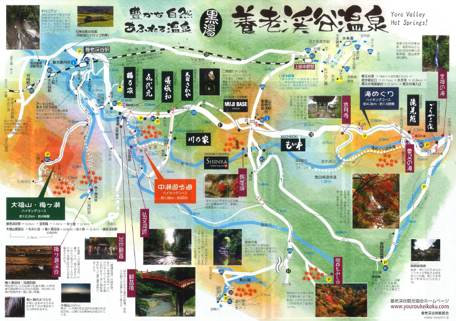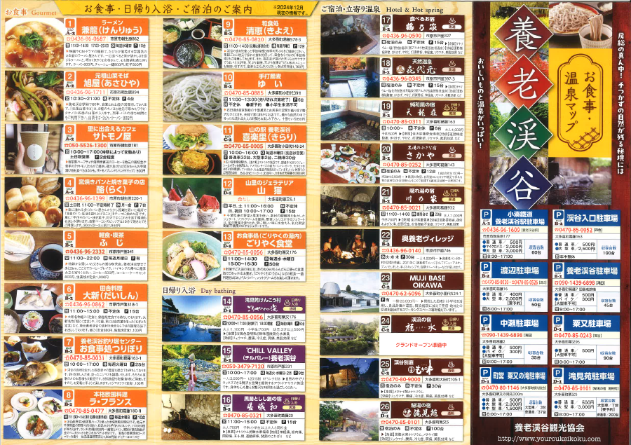また、大多喜町の西方には、房総随一の温泉郷「養老渓谷」があります。黒湯で知られるこの地域の温泉は美肌効果が高いだけでなく、体の芯から温まり湯冷めをしないと評判です。秋の紅葉をはじめとした自然が創り出す絶景と温泉をゆったりとお楽しみください。