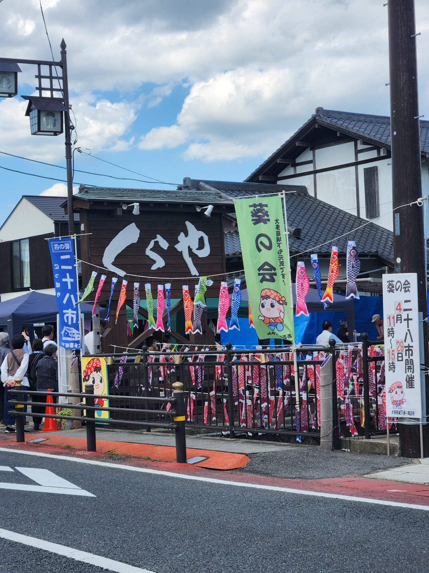 城下町を流れる久保川には、たくさんのこいのぼりが飾られます。