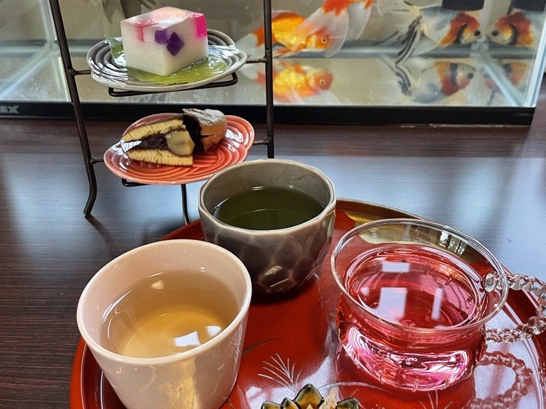「きんぎょ茶や」は、大多喜町の味覚を気軽に楽しめる喫茶コーナー。城下町の散策途中に立ち寄って、和菓子や地酒、クラフトビールなどを“ちょこっとずつ”味わえる、贅沢なひとときを提供しています。