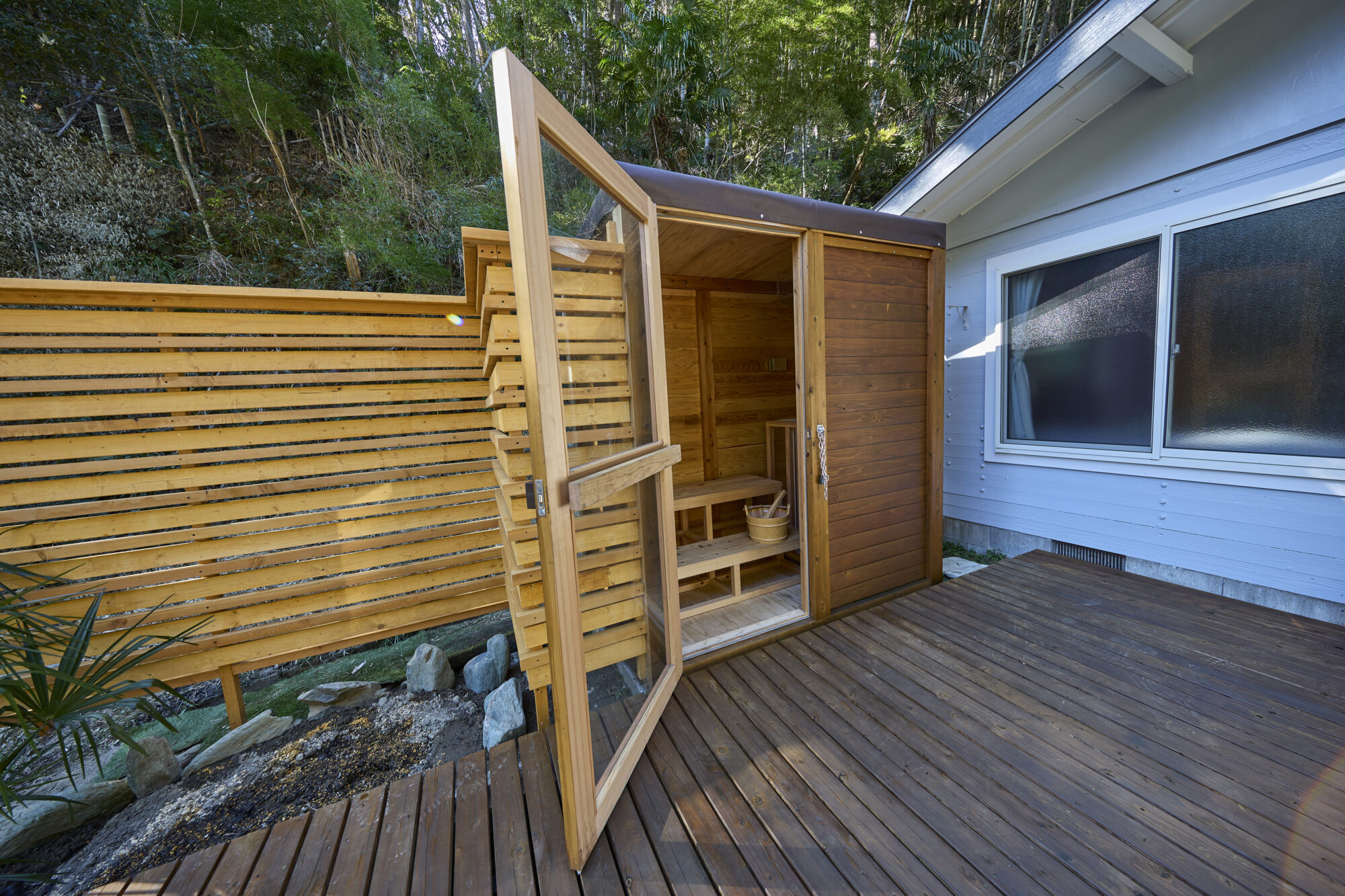 宮崎杉を使用したガスヒーターによるプライベートサウナもお楽しみください。