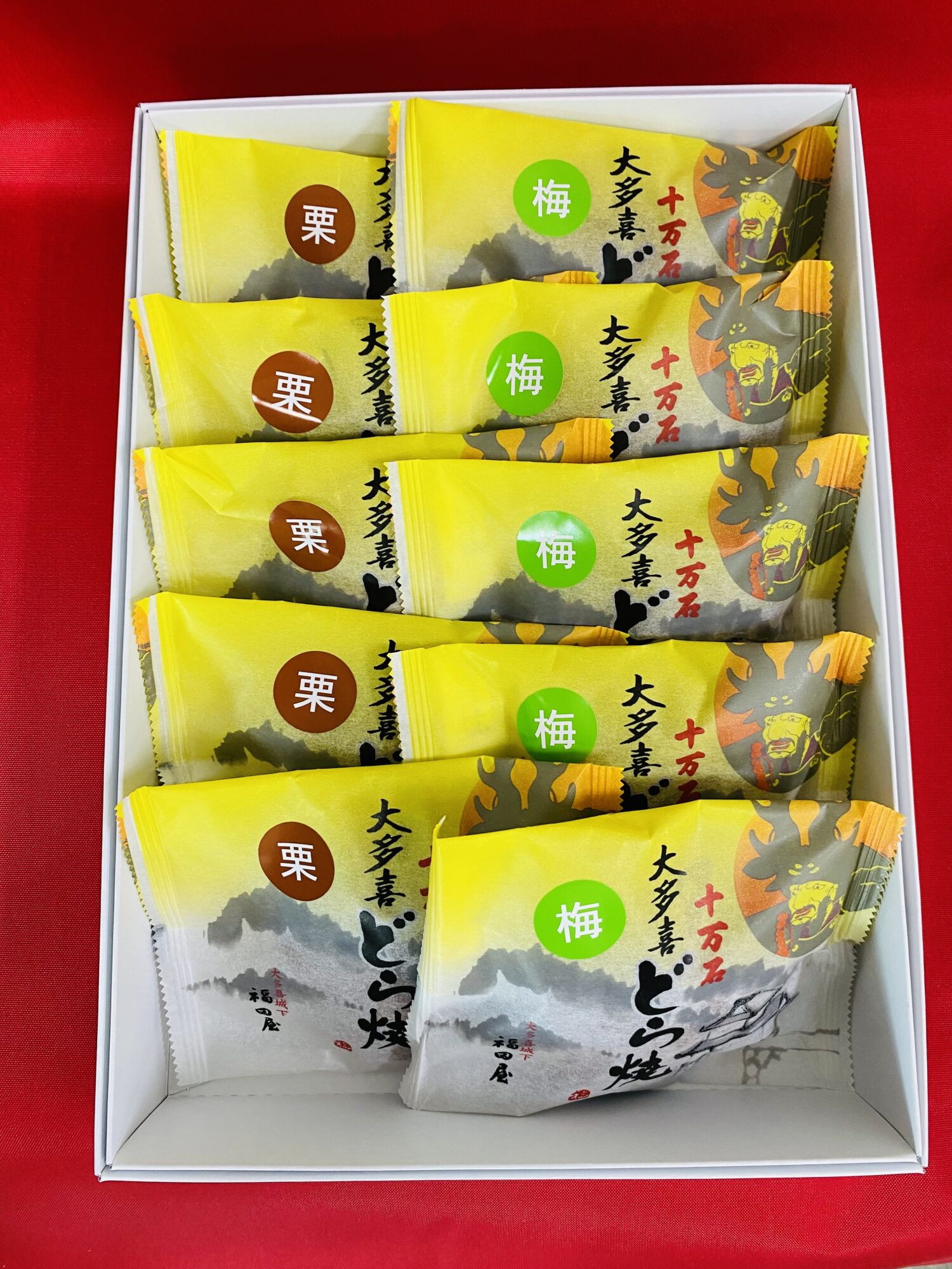 明治時代から4代続く老舗和菓子処手作りの「十万石大多喜どら焼き」2種類「栗6個・梅6個」の詰合せです。