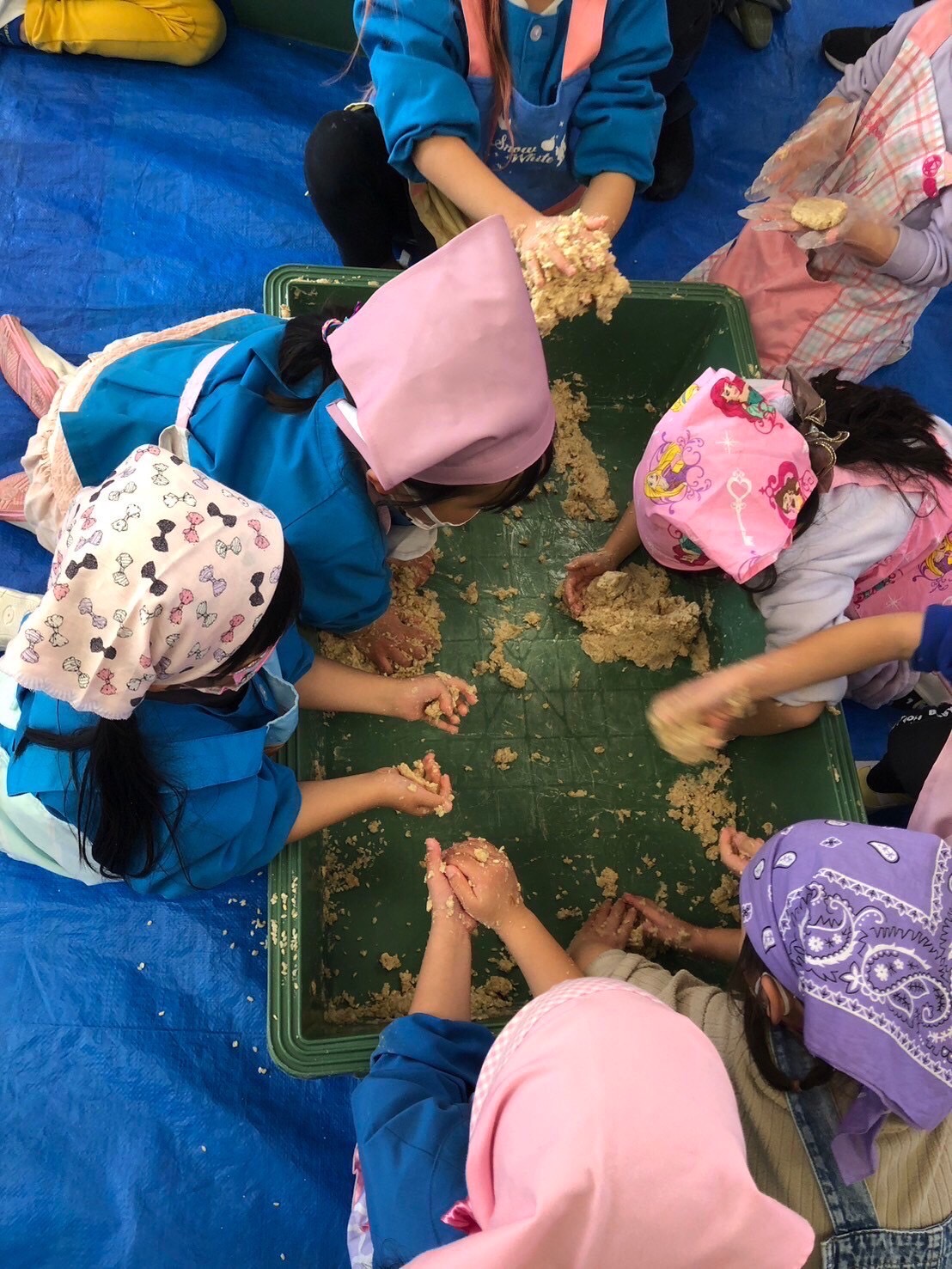 味噌作りに合わせて無農薬米で麹を仕込み、当日は大豆と自然塩を合わせます。