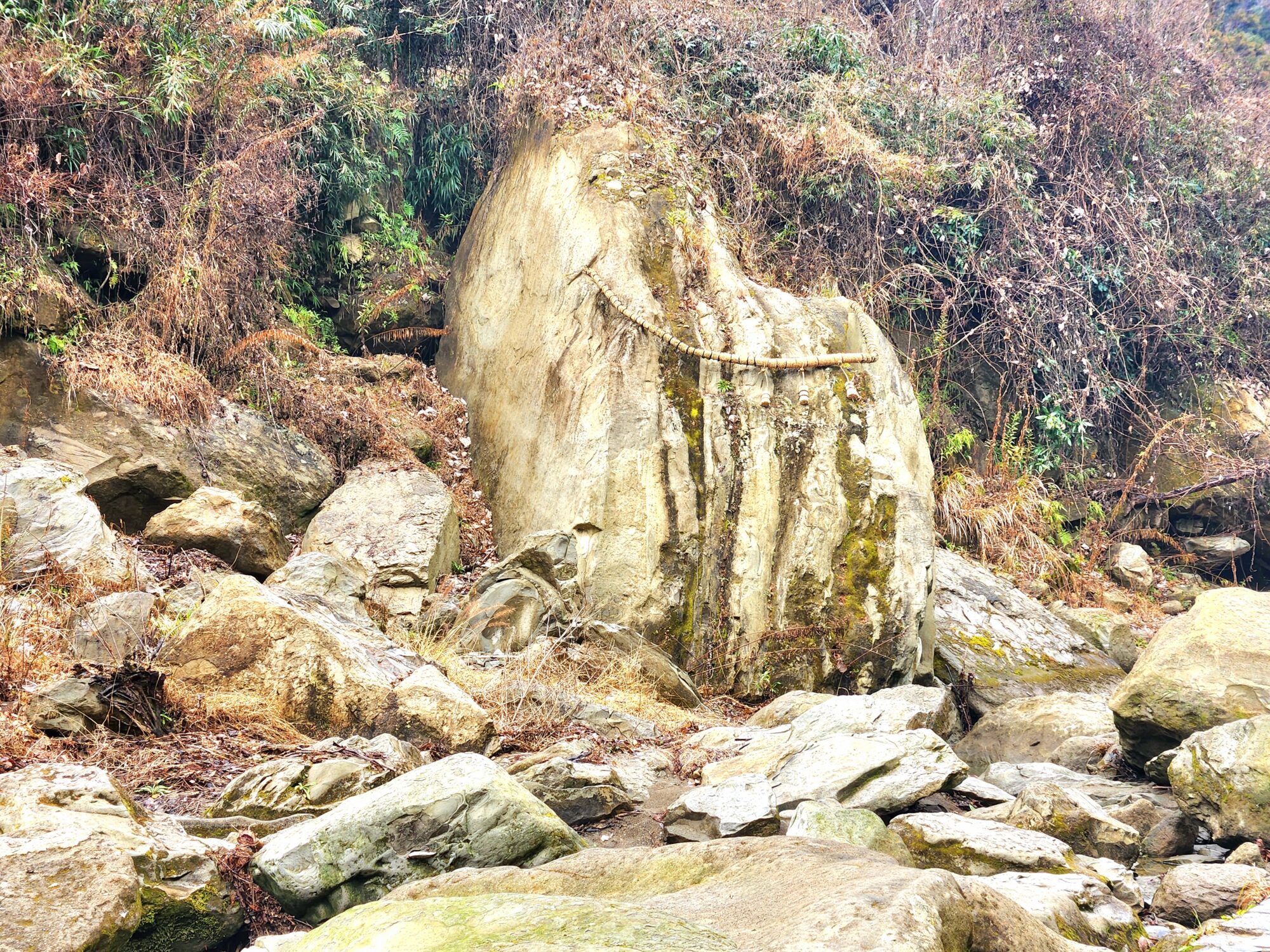この場所には、歴史ある神社や近年姿を現した伝説の大岩など、不思議な力に満ちたスポットが点在しています。