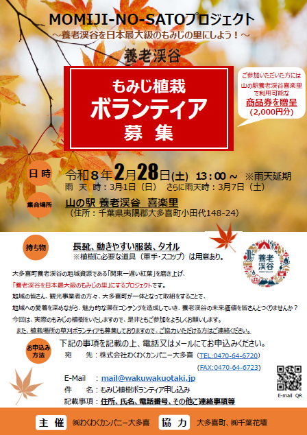 養老渓谷を日本最大級のもみじの里にしよう!
