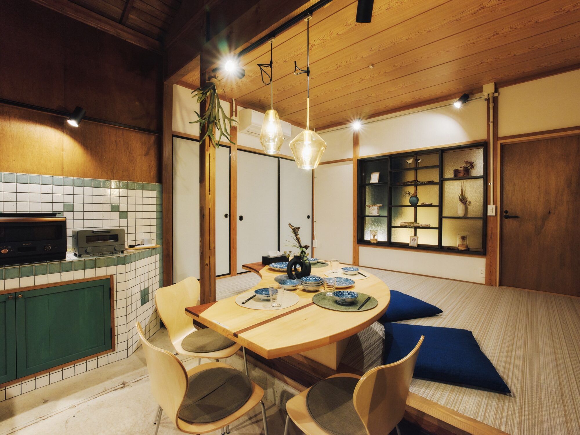 ゆったりとした和の空間に、懐かしいような落ち着いたお部屋には洗練された家具や調度品が並びます。畳で寝転んでお昼寝するもよし、みんなで囲炉裏を囲んでほっこり盛り上がるもよし。大人は子どもの頃のように、子どもは初めての体験にワクワクできることでしょう。もちろん、Wi-fi も冷暖房も完備しておりますので、快適な休日をお楽しみいただけます。