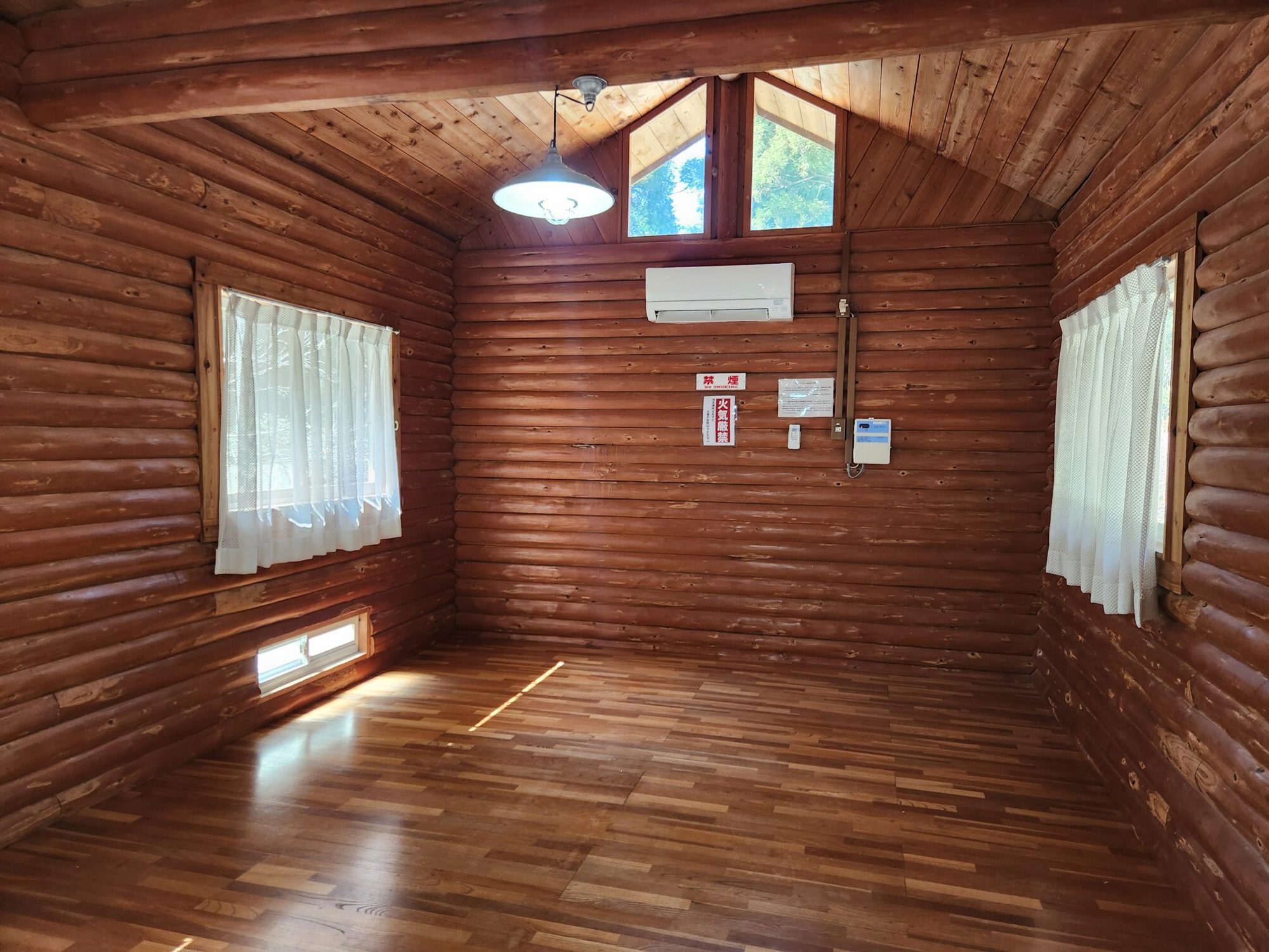ログキャビンは、どこか懐かしい「昭和の山荘」のような雰囲気が漂います。